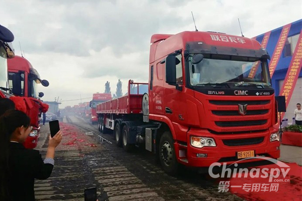 聯(lián)合卡車首批20臺(tái)LNG牽引車交付新疆洪通物流