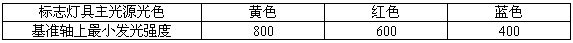 標(biāo)志燈具每個主光源基準(zhǔn)軸上最小的發(fā)光強(qiáng)度應(yīng)符合表2規(guī)定。