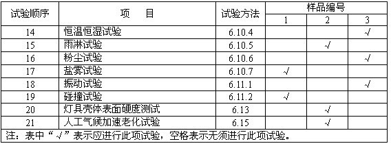 按表6的規(guī)定進(jìn)行型式試驗(yàn),如果有一項(xiàng)試驗(yàn)不符合要求,則判定該型號標(biāo)志燈具型式檢驗(yàn)不合格。
