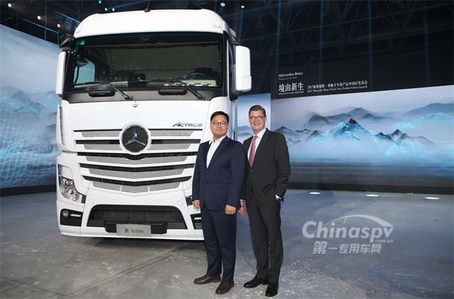梅賽德斯-奔馳卡車銷售、市場與服務(wù)負(fù)責(zé)人提爾•歐波維爾德先生(Till Oberwoerder)以及戴姆勒卡客車(中國)有限公司代理首席執(zhí)行官樸正佑先生(Jung-Woo Park)出席了在珠海航展中心舉行的發(fā)布會(huì)
