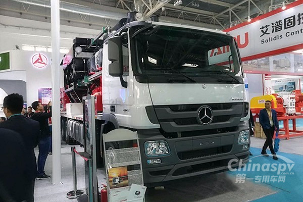 三一展出的奔馳底盤壓裂車