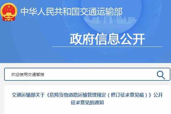 交通運(yùn)輸部關(guān)于《危險(xiǎn)貨物道路運(yùn)輸管理規(guī)定(修訂征求意見稿)》公開征求意見的通知