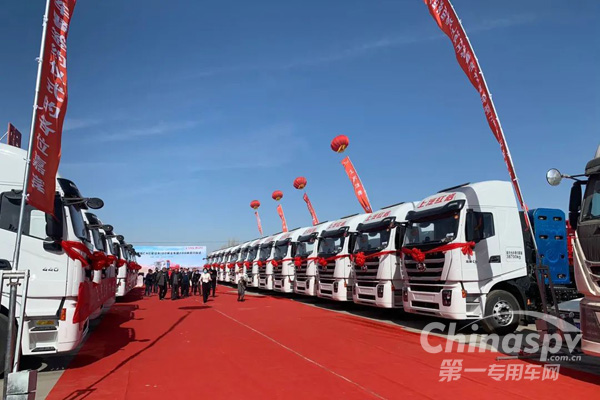 數(shù)百臺(tái)上汽紅巖杰獅C6 PLUS CNG牽引車于哈密交付