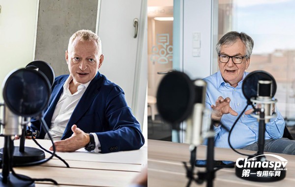 圖1.右:戴姆勒卡車董事會主席、CEO杜墨(Martin Daum),左:麥肯錫全球高級合伙人、氣候技術(shù)及氫能源專家貝恩德•海德(Bernd Heid)
