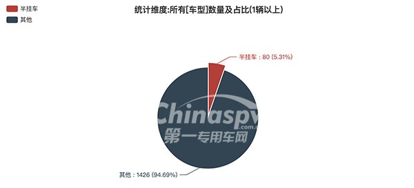 第362批新車(chē)產(chǎn)品公示中的1506輛產(chǎn)品中,半掛車(chē)(80輛,占比5.31%)。