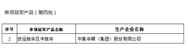 中集車輛半掛車榮獲工信部“制造業(yè)單項(xiàng)冠軍產(chǎn)品”
