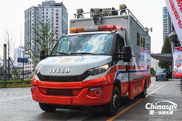 該車采用了進(jìn)口依維柯的Daily 70系列底盤,最大載重量可以達(dá)到7噸。該車的總質(zhì)量為6.6噸,加上人員和物資剛好滿足七噸的標(biāo)準(zhǔn)。另一方面,進(jìn)口依維柯的Daily為非承載式車身結(jié)構(gòu),對(duì)房車、通信車、工程車、消防車之類有載重需求的第三方上裝還是比較友好的。
