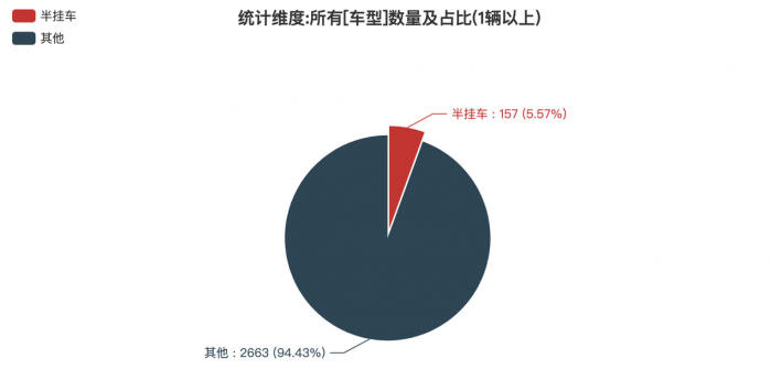 第372批新車產(chǎn)品公示中的2820輛產(chǎn)品中,半掛車(157輛,占比5.57%)。![]()