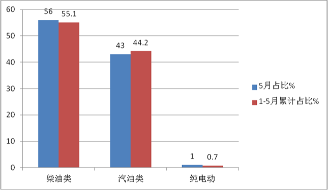 總之,按動力種類劃分,無論是今年5月還是1-5月,醫(yī)療救護車市場中柴油類車型均居榜首,純電動車型均領漲。