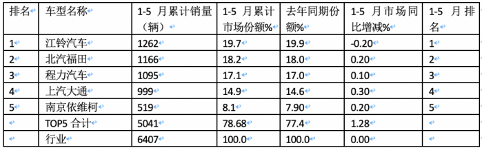 特點六、江鈴、福田、程力居前三;TOP5累計占比近8成