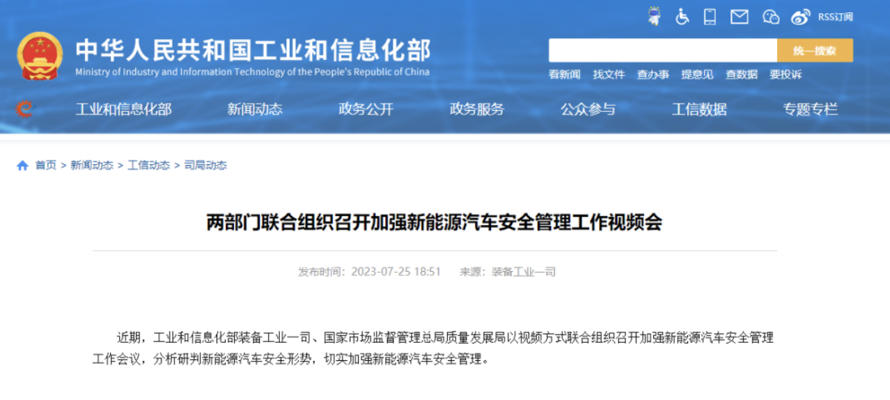 近期,工業(yè)和信息化部裝備工業(yè)一司、國家市場監(jiān)督管理總局質(zhì)量發(fā)展局以視頻方式聯(lián)合組織召開加強(qiáng)新能源汽車安全管理工作會(huì)議,分析研判新能源汽車安全形勢,切實(shí)加強(qiáng)新能源汽車安全管理。