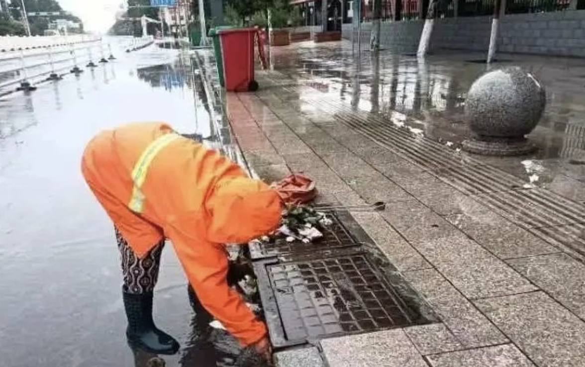 其中,成安福龍馬在汛前積極組織環(huán)衛(wèi)工人逐一疏通下水道、沙井口,清理堵塞的垃圾、落葉和淤泥,排除積水隱患,確保汛期地下管道排水順暢。