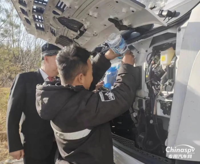 歐航歐馬可服務商到達的第一件事,便是把暖心餐交到客戶手里,讓客戶在寒冷中迅速獲得溫暖的能量。隨即經(jīng)過10分鐘的檢查,歐航歐馬可服務商發(fā)現(xiàn)是連接螺絲脫落導致,經(jīng)過專業(yè)處理,排除故障,順便為客戶加了玻璃水,保證遙遠的路途能有清晰的視野,保障駕駛安全。