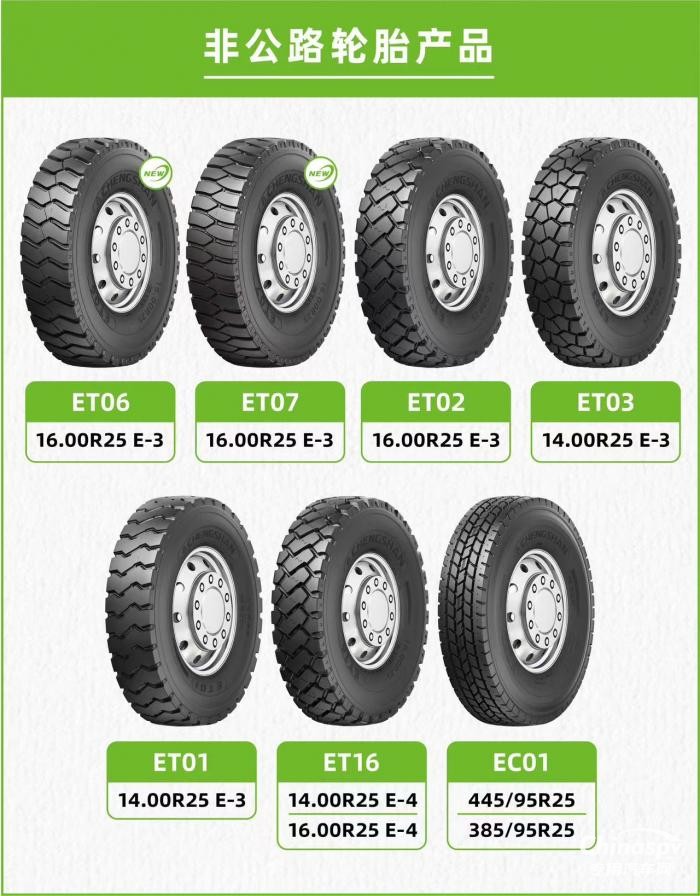此次上市的非公路礦用寬體車輪胎ET06、ET07正是企業(yè)OTR創(chuàng)新技術(shù)應(yīng)用的新作,針對(duì)新疆、內(nèi)蒙等地惡劣作業(yè)條件的長(zhǎng)距離運(yùn)輸,定制化花紋與結(jié)構(gòu)設(shè)計(jì),配合創(chuàng)新材料與超耐切割胎面配方的應(yīng)用,大大改善磨耗延長(zhǎng)使用壽命。此外產(chǎn)品均采用加寬加深的花紋溝設(shè)計(jì),提供優(yōu)異的牽引力和抓著力;獨(dú)特的胎肩凹槽設(shè)計(jì),既美觀又利于散熱;獨(dú)特的彈石臺(tái)設(shè)計(jì),可有效避免夾石子,提升耐刺扎能力,全力助力礦山用戶的高效作業(yè)及安全生產(chǎn)。