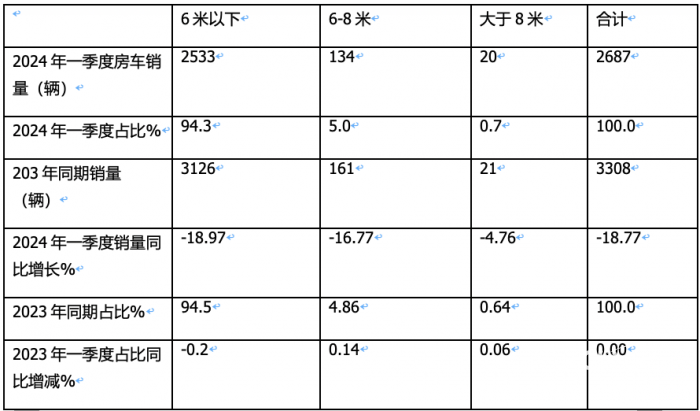 那么2024年一季度房車銷量有啥具體特點?現(xiàn)進(jìn)行扼要總結(jié)分析。