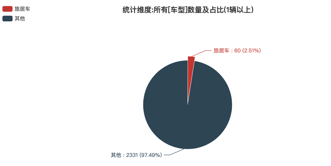 第384批新車產品公示中的2391輛產品中,旅居車60輛,占比2.51%。