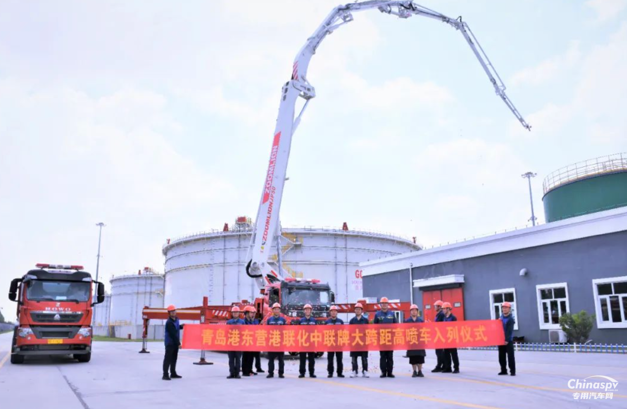 日前,“青島港東營港聯(lián)化中聯(lián)牌大跨距高噴車入列儀式”在山東港口集團東營港聯(lián)化庫區(qū)舉行。中聯(lián)重科交付的大跨距舉高噴射消防車正式“上崗”。
