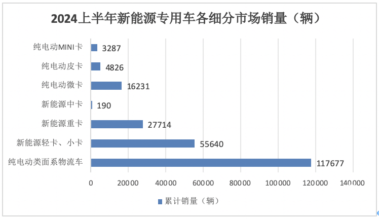 1、2024上半年新能源專(zhuān)用車(chē)各細(xì)分市場(chǎng)累計(jì)銷(xiāo)量: