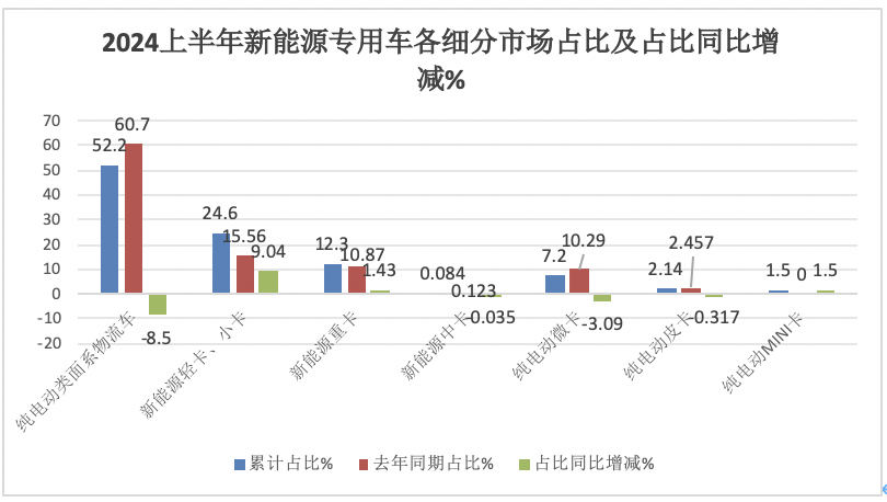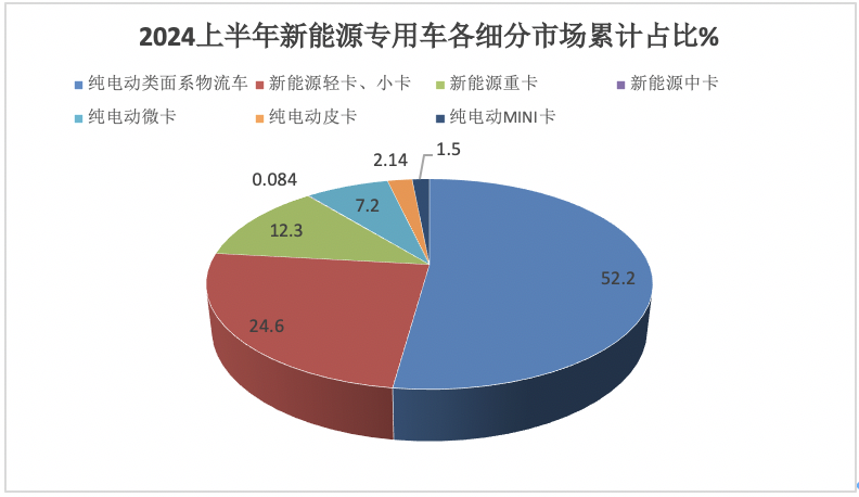 2、2024上半年新能源專(zhuān)用車(chē)各細(xì)分市場(chǎng)累計(jì)占比: