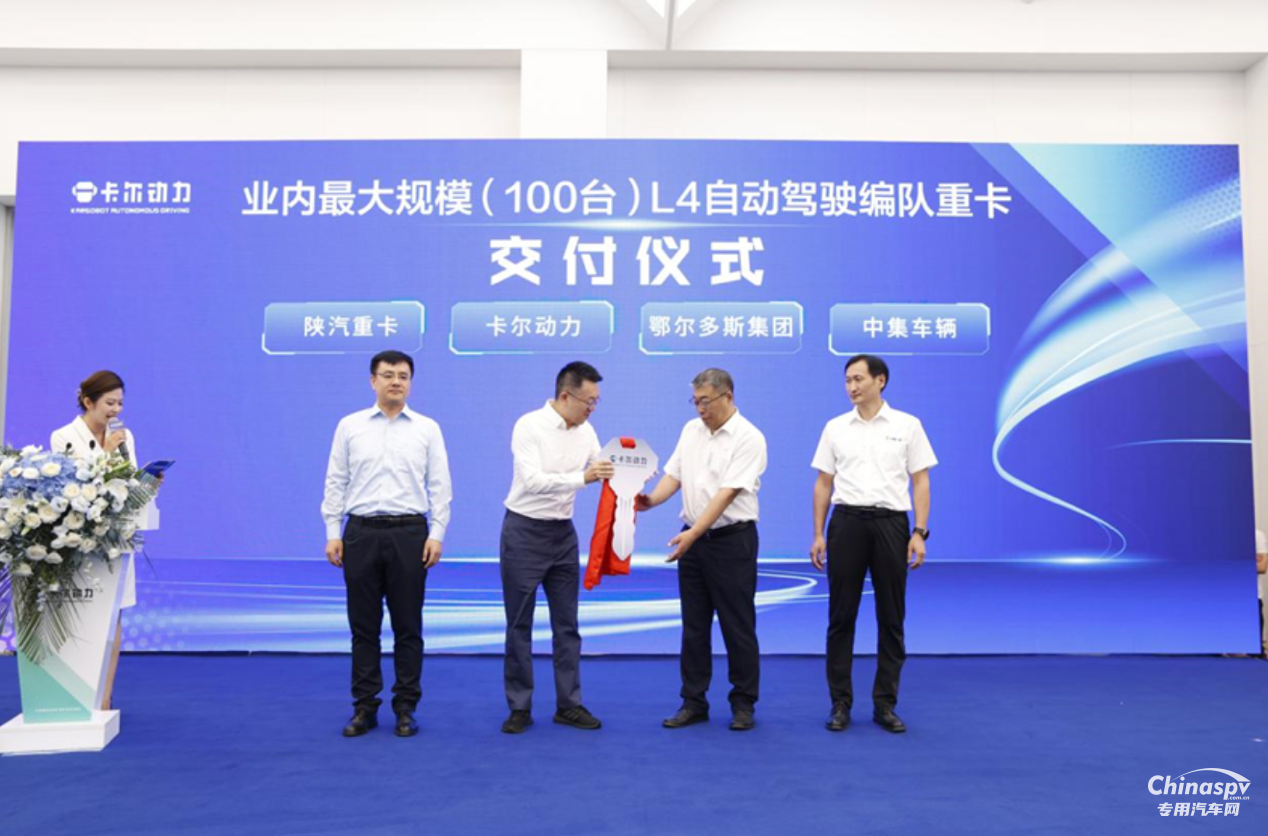 與此同時,中集·陜汽·卡爾動力三方攜手,向鄂爾多斯集團交付業(yè)內(nèi)最大規(guī)模100組好牽掛列車;這100組自動駕駛好牽掛列車未來將馳騁在祖國的大地上,為物流運輸行業(yè)帶來偉大變革,為物流運輸行業(yè)注入新的活力與動力。