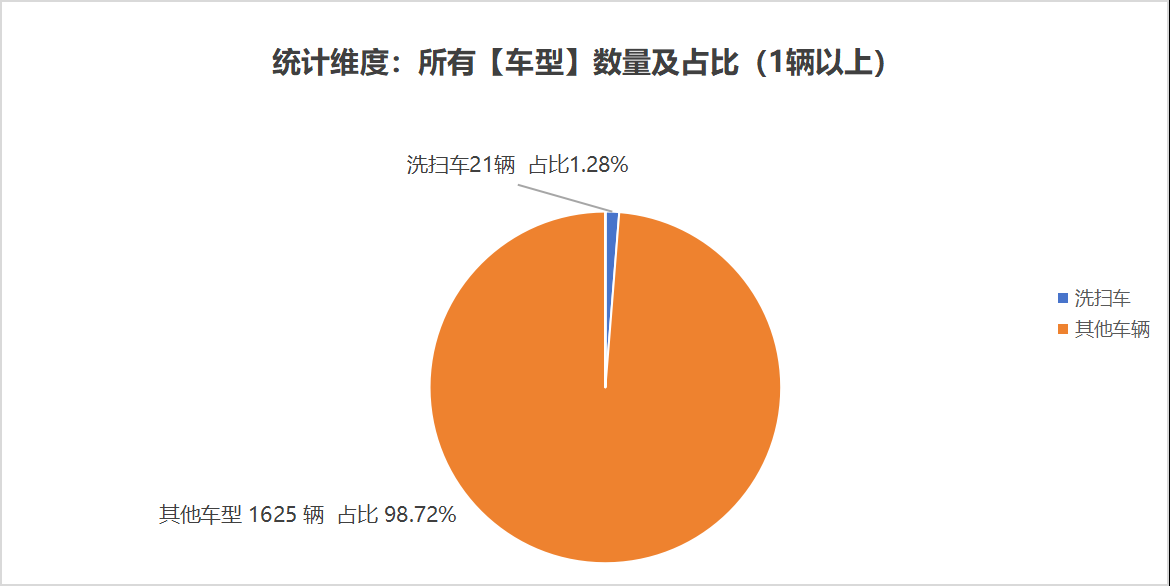 本次公告中的21款洗掃車的車型共有2種,純電動(dòng)洗掃車(20輛)、未公布類型洗掃車(1輛)。