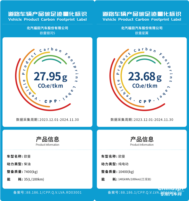 福田歐曼銀河5、歐曼星翼碳足跡量化標(biāo)識(shí)
