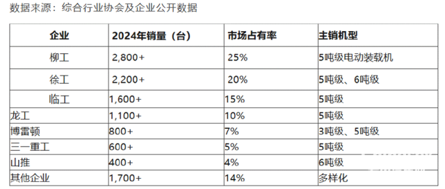 柳工則依托經(jīng)銷商網(wǎng)絡(luò),2024年以25%的市占率成為電動裝載機(jī)龍頭。