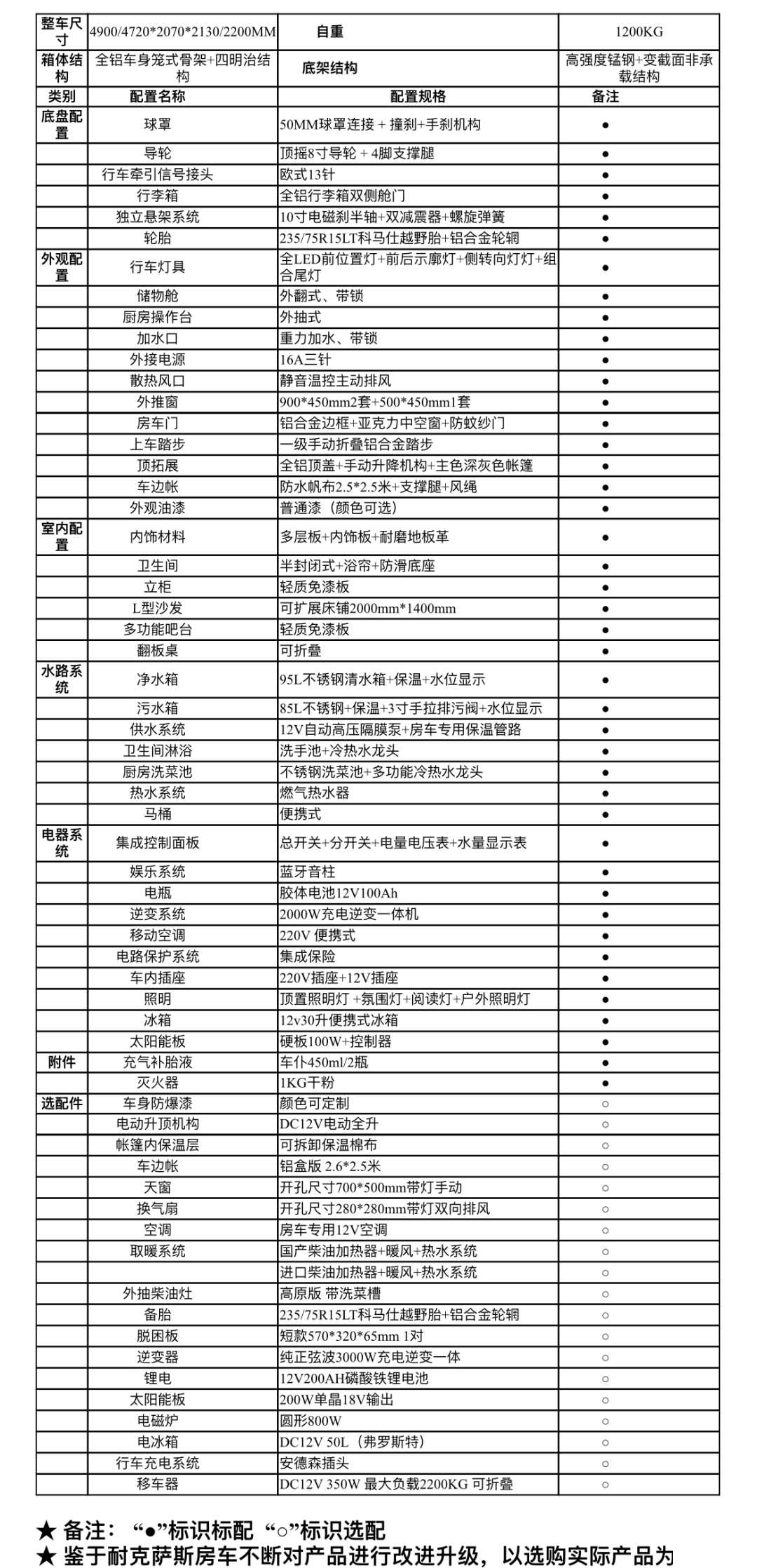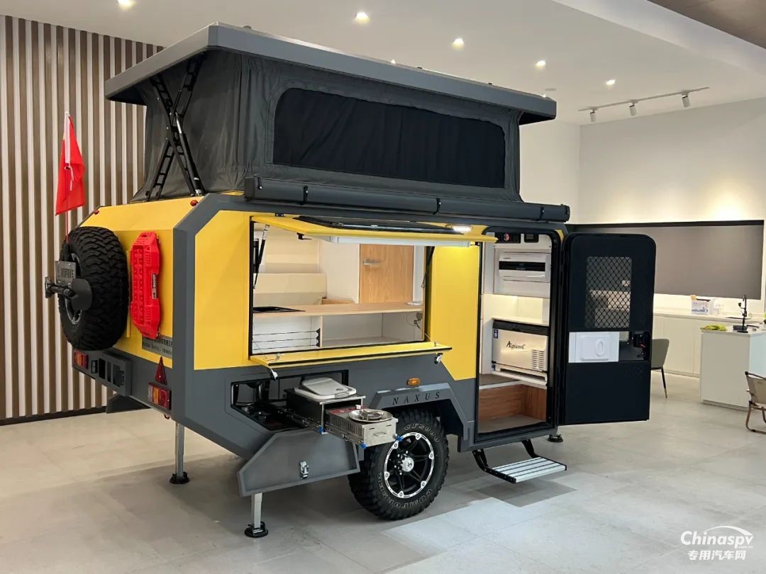 外部主要配置:澳式50 拖車連接器、重型雙輪導向輪、手動重型駐車支腿、外置超大儲物箱、手動升降頂棚、遮陽棚及抽拉高原版柴油灶(選配)等。