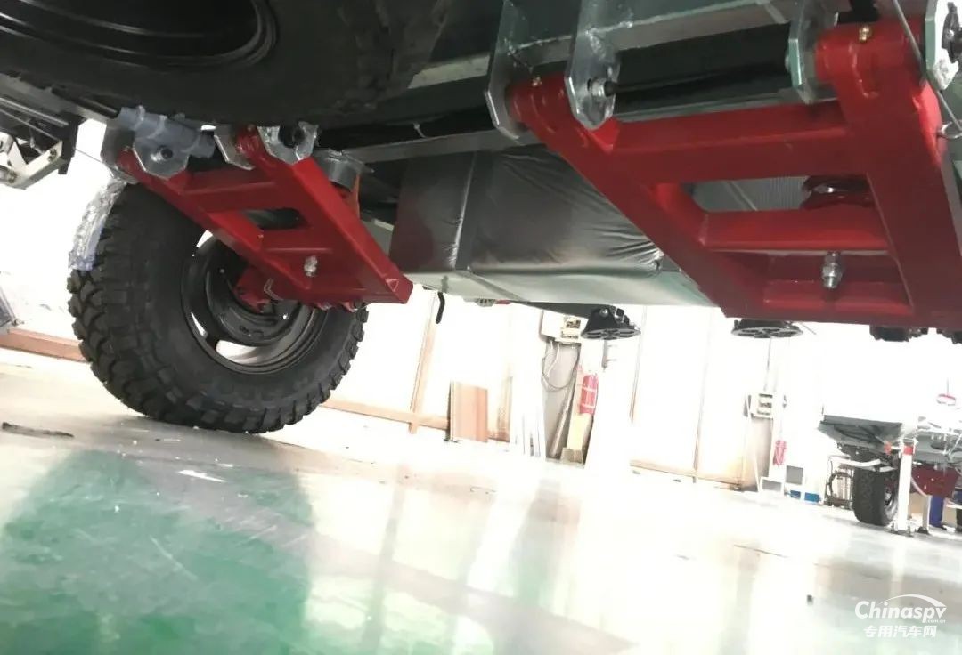 專為越野設(shè)計的底盤為獨立懸掛系統(tǒng),非承載結(jié)構(gòu),輪胎是越野輪胎,離地間隙30厘米,可有效保證穩(wěn)定性,即便遇到坑坑坎坎也能輕松自如的通過。車尾可配備備胎、工兵鏟等,備胎兩側(cè)還能外帶油箱或者脫困板,能夠?qū)崿F(xiàn)長距離的越野穿越。另外,電子剎車+駐車制動形式保證可靠的安全性。硬朗的線條,棱角分明,散發(fā)著濃郁的越野氣息。
