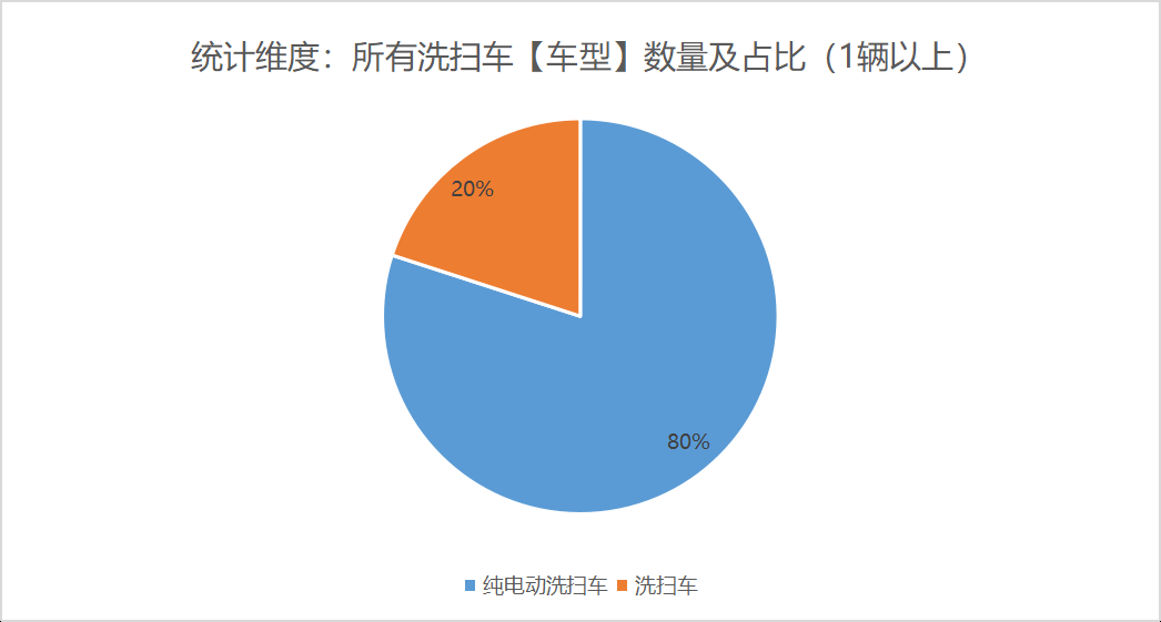 本次公告中的30款洗掃車(chē)中,純電動(dòng)洗掃車(chē)(24輛,占比80%)、未公布能源情況(6輛,占比20%)。
