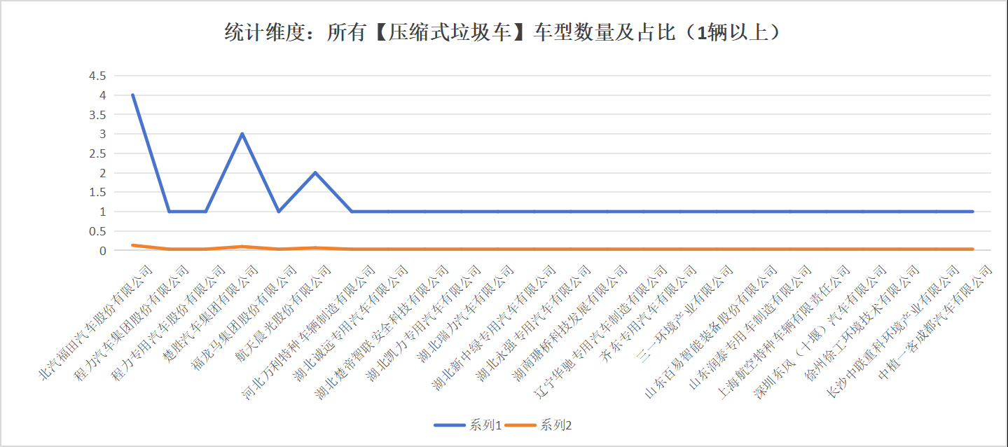 本次公告中的30款垃圾車的生產(chǎn)企業(yè)共有24家,其中:北汽福田汽車股份有限公司(4輛)、程力汽車集團(tuán)股份有限公司(1輛)、程力專用汽車股份有限公司(1輛)、楚勝汽車集團(tuán)有限公司(3輛)、福龍馬集團(tuán)股份有限公司(1輛)、航天晨光股份有限公司(2輛)、河北萬利特種車輛制造有限公司(1輛)、湖北誠遠(yuǎn)專用汽車有限公司(1輛)、湖北楚帝智聯(lián)安全科技有限公司(1輛)、湖北凱力專用汽車有限公司(1輛)、湖北瑞力汽車有限公司(1輛)、湖北新中綠專用汽車有限公司(1輛)、湖北永強(qiáng)專用汽車有限公司(1輛)、湖南瑭橋科技發(fā)展有限公司(1輛)、遼寧華馳專用汽車制造有限公司(1輛)、湖齊東專用汽車有限公司(1輛)、三一環(huán)境產(chǎn)業(yè)有限公司(1輛)、山東百易智能裝備股份有限公司(1輛)、山東潤泰專用車制造有限公司(1輛)、上海航空特種車輛有限責(zé)任公司(1輛)、深圳東風(fēng)(十堰)汽車有限公司(1輛)、徐州徐工環(huán)境技術(shù)有限公司(1輛)、長沙中聯(lián)重科環(huán)境產(chǎn)業(yè)有限公司(1輛)、中植一客成都汽車有限公司(1輛)。