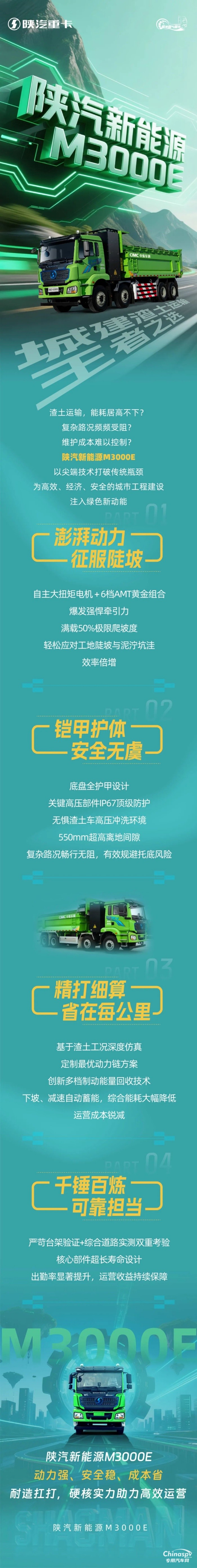 陜汽新能源M3000E,城建渣土運輸王者之選