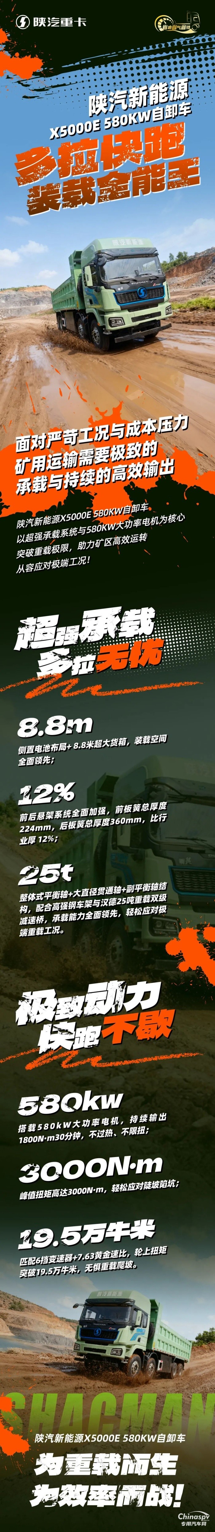 陜汽新能源X5000E 580KW自卸車,多拉快跑,裝載全能王!
