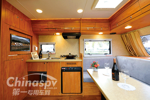 生活設(shè)施:電磁爐;進口抽油煙機;進口房車專用三能源冰箱(DC12,AC220,燃?xì)?,水槽;