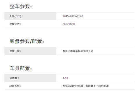 公告型號 ZK5070XZH