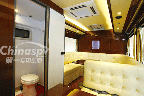 改裝后亮點(diǎn):超大落地窗,外觀造型新穎獨(dú)特;4組對坐卡座,后部7人環(huán)形沙發(fā),車內(nèi)空間寬敞,設(shè)置衛(wèi)生間、飲水機(jī)等生活服務(wù)設(shè)施。