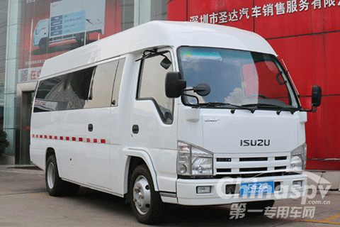 這款車有著客車的外形,它是在慶鈴100P輕卡的基礎(chǔ)上改進(jìn)的,所以駕駛室和底盤等還是沿用了100P。從正面看,這款車與100P沒有太大區(qū)別,依然是慶鈴經(jīng)典的外觀,在國內(nèi)不少輕卡上都可以見到。