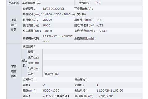 公告型號(hào) 東風(fēng)車輛運(yùn)輸半掛車