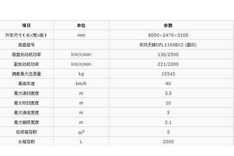 采用吸掃結(jié)合、濕式除塵、電液控制,液壓傾翻卸料的作業(yè)方式對(duì)路面進(jìn)行清掃作業(yè)。