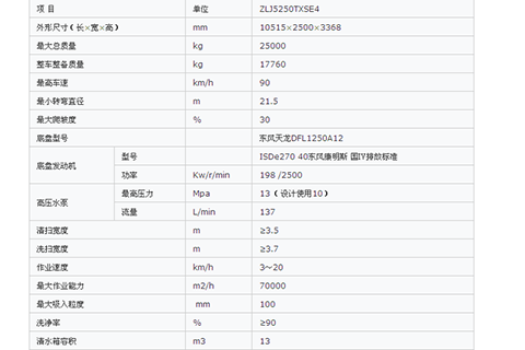 ZLJ5162TXSDE4洗掃車采用配有康明斯ISDE210-40型發(fā)動機的東風天錦DFL1160BX5汽車二類底盤改裝,功率強勁,排放達到國Ⅳ標準。采用東風康明斯國二排放的EQB160-20副發(fā)動機,驅(qū)動高壓水泵及工作裝置液壓系統(tǒng)。主要配套件實行全球采購,采用國際名牌高壓水泵、水安全閥,高壓噴槍、噴嘴及進口關(guān)鍵液壓、電器元件,性能優(yōu)良、工作可靠。