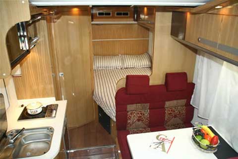 季風(fēng)TC5045XLJ-C型房車在駕駛室的上方增加了一個可以供兩人住宿的頂置雙人床鋪。為更多人出門旅行提供更多方便。這樣此款C型季風(fēng)的住宿人數(shù)可以達到5~6人。