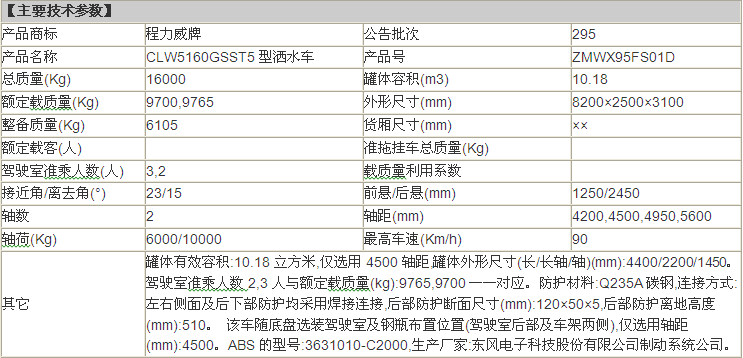 公告型號 CLW5160GSST5