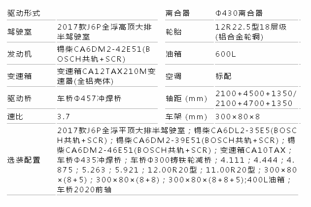 輕量:采用1950前橋、鋁變速箱、鋁儲氣筒、真空胎,整車自重較原有2020前橋J6P產(chǎn)品輕0.5噸左右,選裝單層車架,鋁合金輪輞整車最輕可達9.1t,為用戶創(chuàng)造更多經(jīng)濟效益