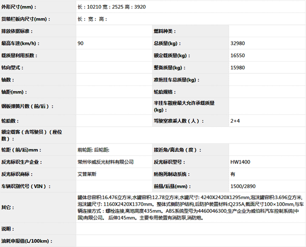 鞍山衡業(yè)AS5333GXFPM170/H5泡沫消防車