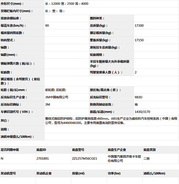 公告型號(hào) ZXF5170TXFXC13/H5