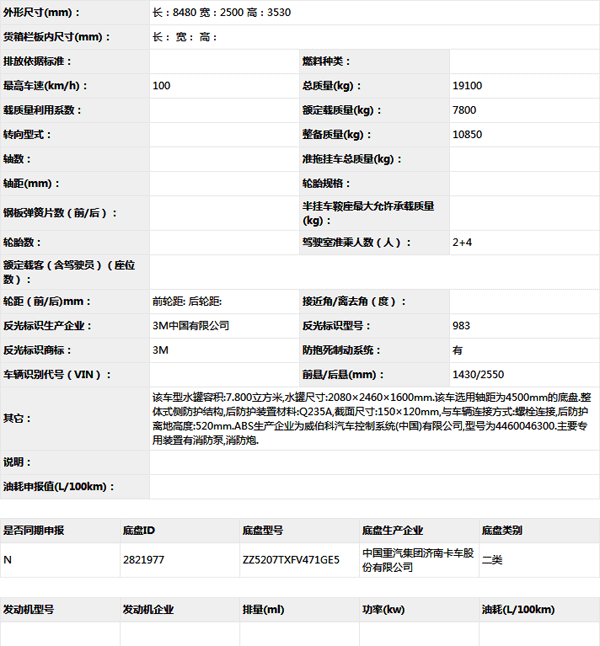 公告型號(hào) XZJ5190GXFSG80/F2