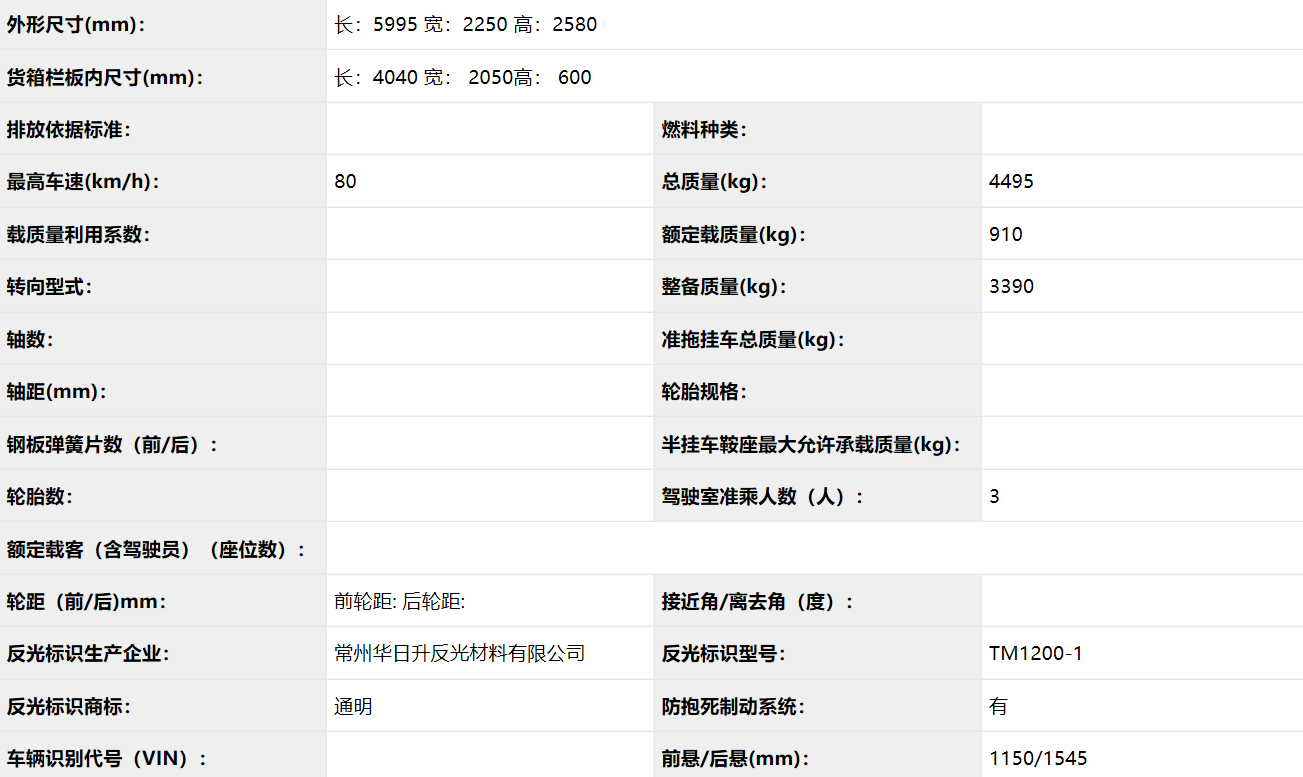 公告型號(hào) CLW5045CTYC5