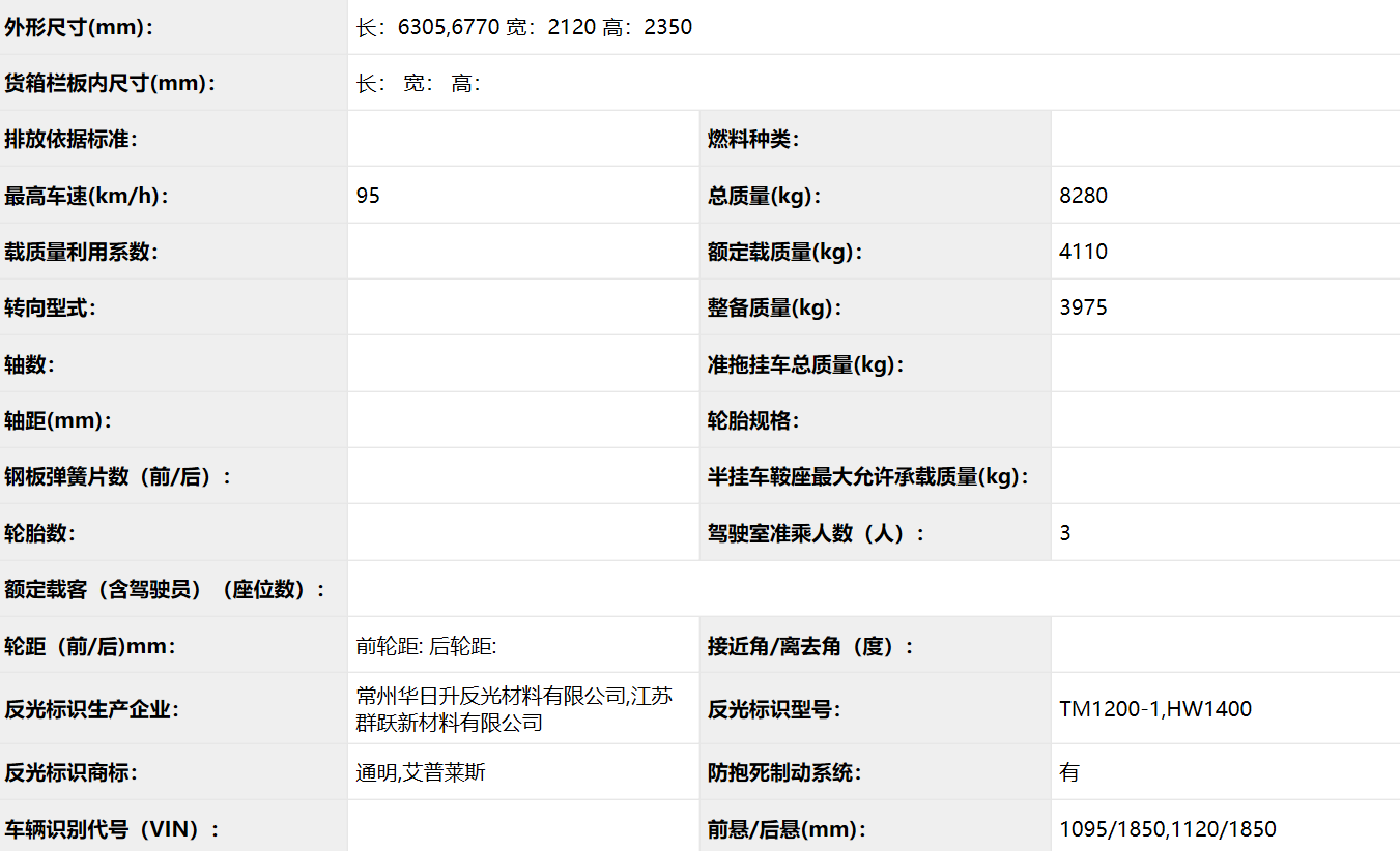 公告型號 CLW5080GSSB5