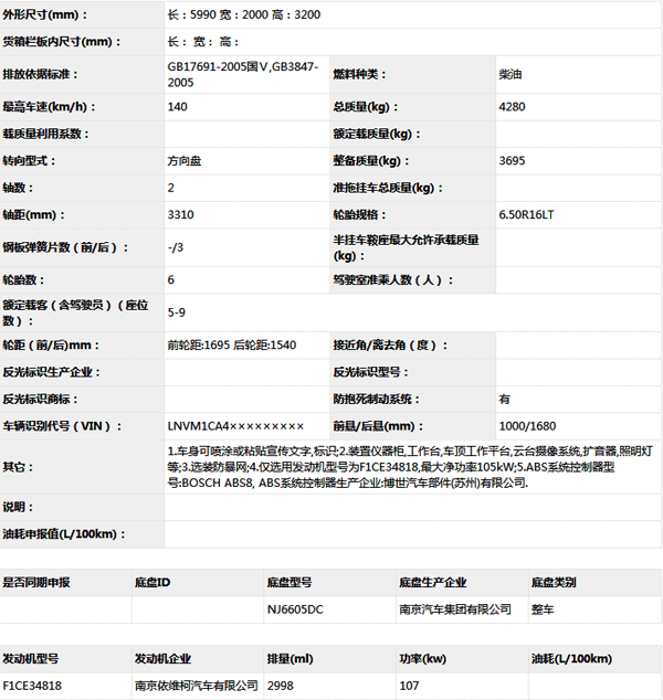 公告型號 CAJ5040XZH