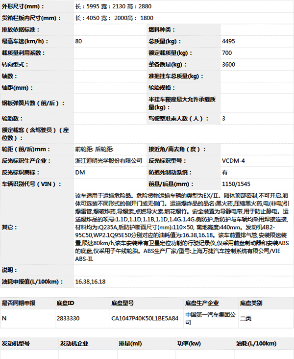 公告型號 CLW5045XQYC5